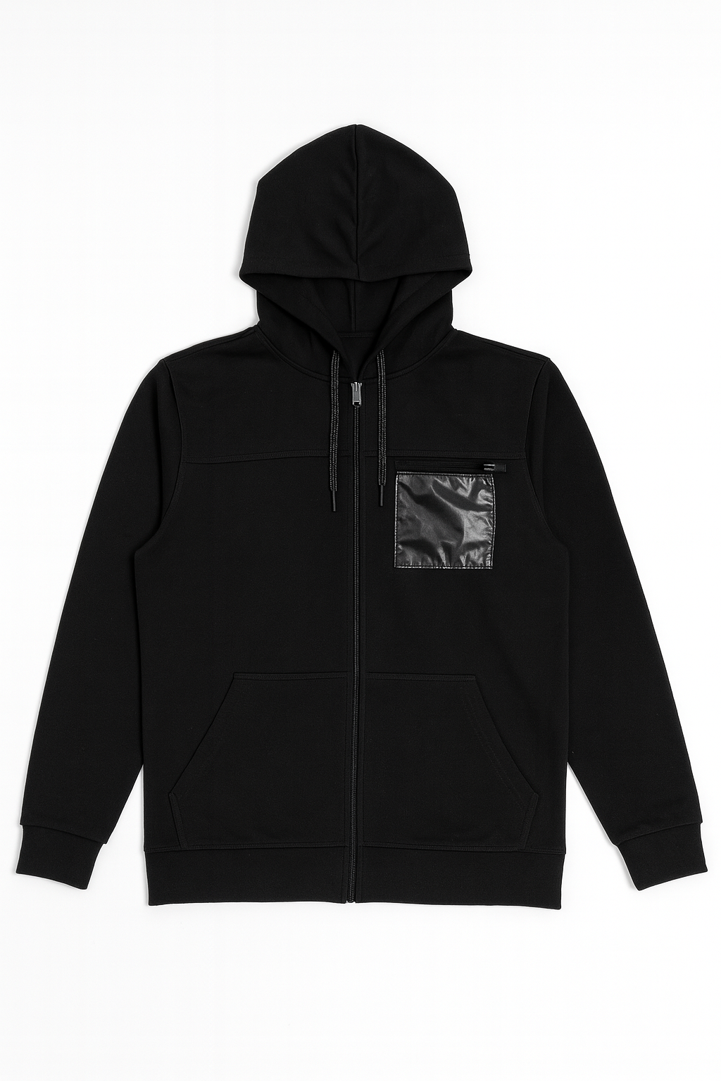 Basic black hood with printed pocket