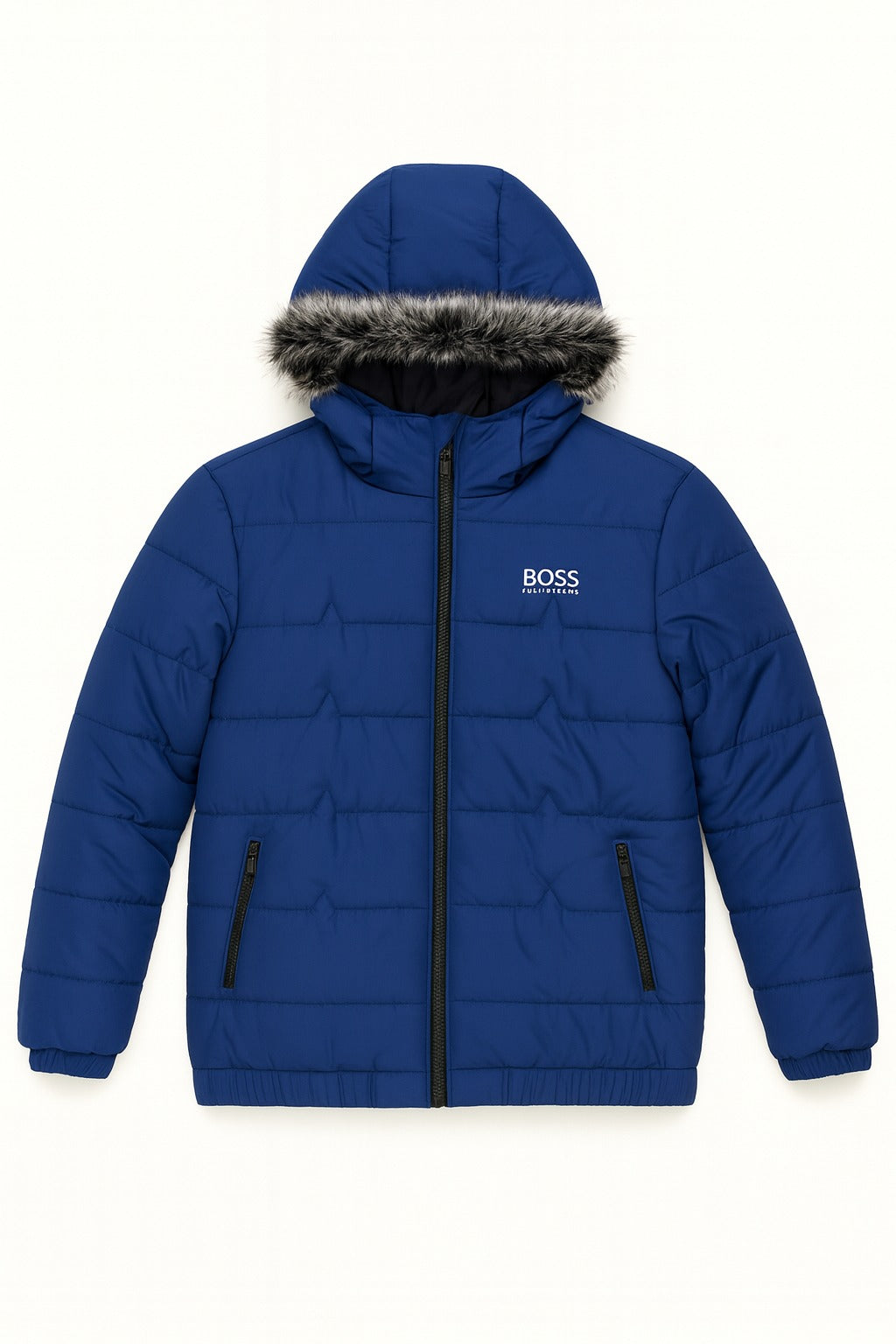 Men’s Navy Oversized Fur Hood Puffer Jacket